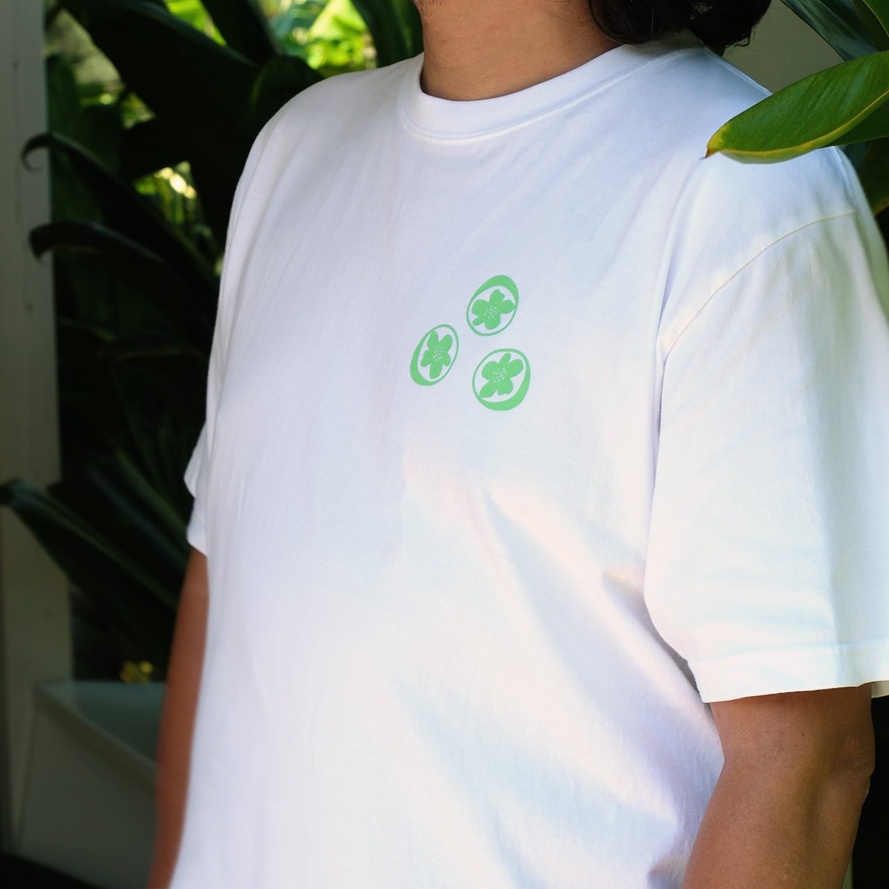 胸元には、3周年にちなんで、グァバを3つ並べて。